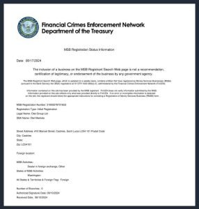 registered as Money Service Business with the US FinCen (MSB Reg. No. 31000278731653), reflecting our